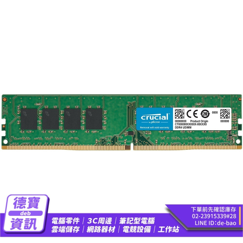 美光Micron Crucial DDR4 3200/8G 桌上型 記憶體(原生3200顆粒) CT8G4DFRA32A