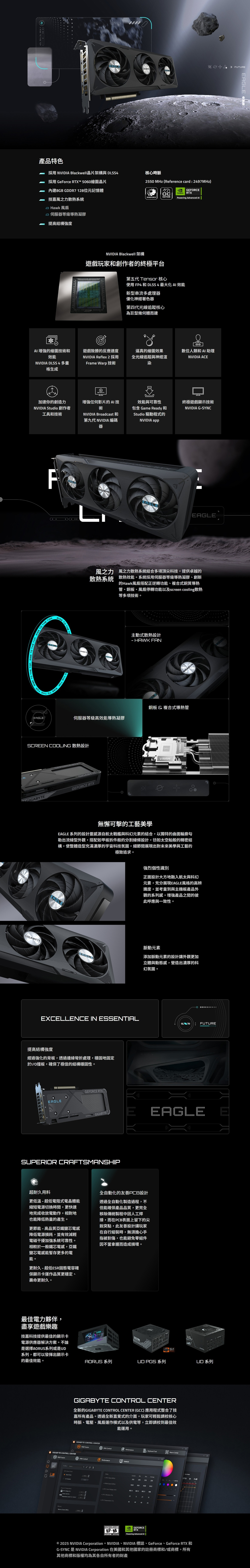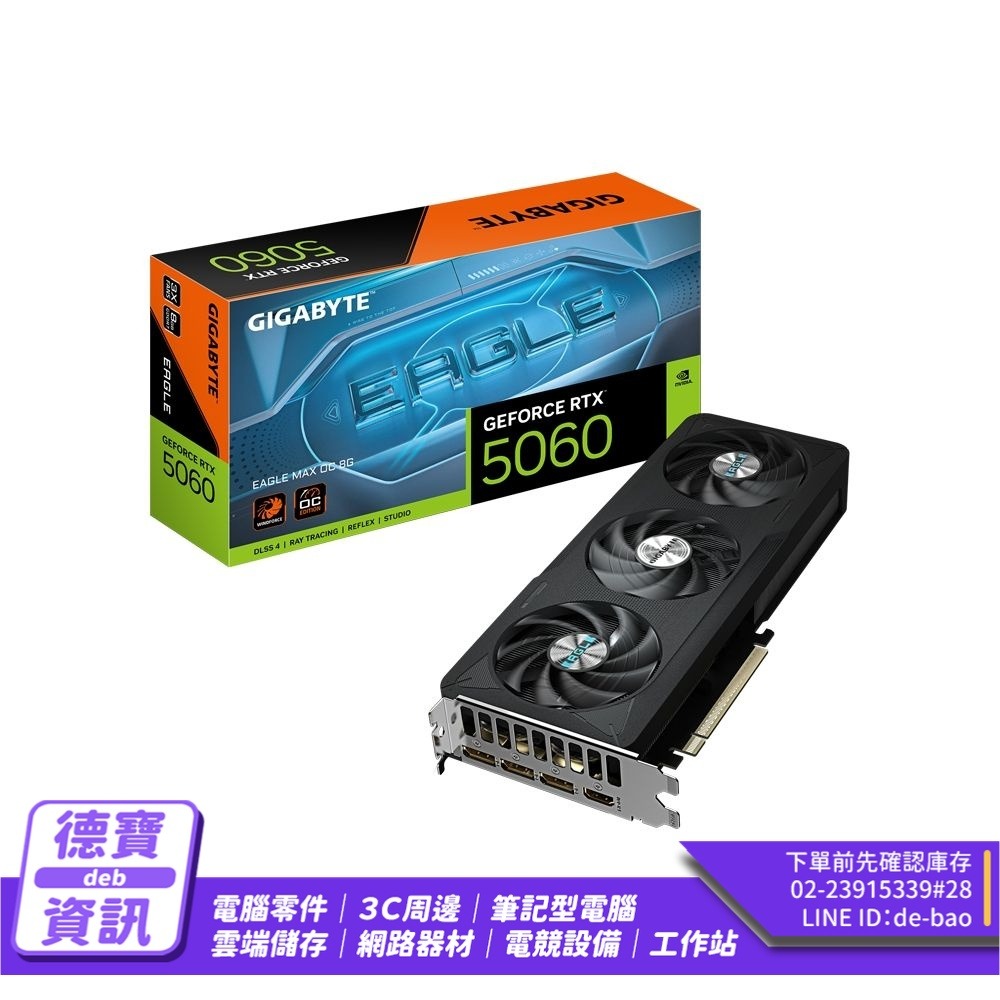 技嘉GIGABYTE GeForce RTX 5060 EAGLE MAX OC 8G 顯示卡/126