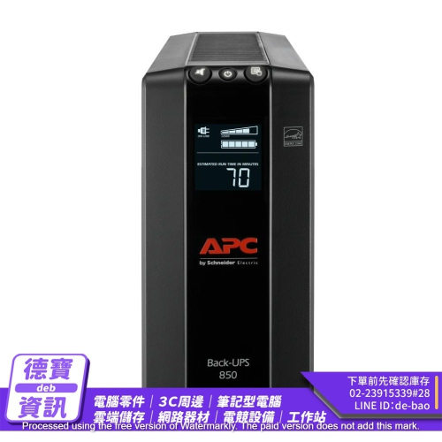 此產品是Back-UPS Pro系列的一部分。 這款850VA UPS共有8個插座,4個插座提供UPS電源備份和突波保護,4個插座僅提供突波保護。 它具有內建AVR和帶有聲音警報的LCD介面。 在100瓦的負載下,它的運行時間為29分鐘。 它的尺寸為 19 x 9.1 x 31 cm和 6.8 kg。 Back-UPS Pro系列為高性能電腦系統、路由器、外部存儲設備、遊戲機和其他家用和商用電子設備提供可靠的電源保護。