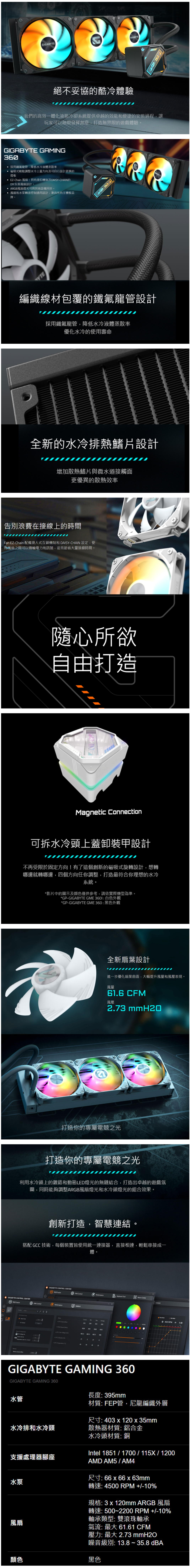 技嘉 GAMING 360 飛鷹 (360mm/可拆式冷頭上蓋/12cm風扇*3/卡扣風扇/三年保固註冊升級五年保)