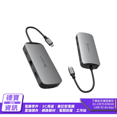 ◎獨立USB-C 多功能集線器,包含兩個USB-C 支援PD 快充與資料傳輸、USB-A、4k HDMI 輸出、VGA、RJ45、SD / microSD 讀卡功能。