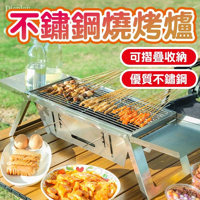 『台灣24H出貨』不鏽鋼燒烤爐 可折疊燒烤爐 露營燒烤爐 野餐必備烤爐 戶外木炭燒烤爐 加厚燒烤架 摺疊碳烤爐 烤串爐
