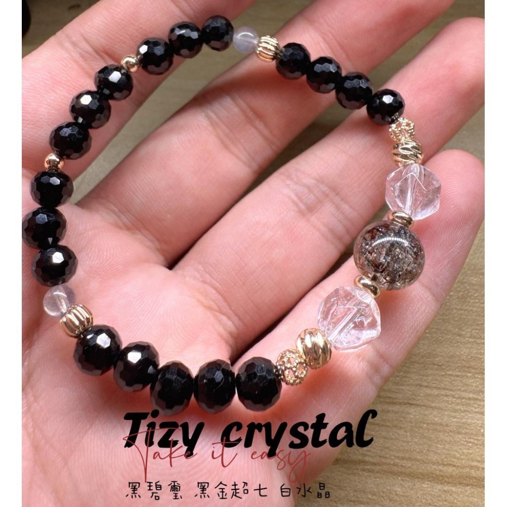 配件分別為 頂級黑金超七 黑碧璽 白水晶 灰月光 18k金 配飾
