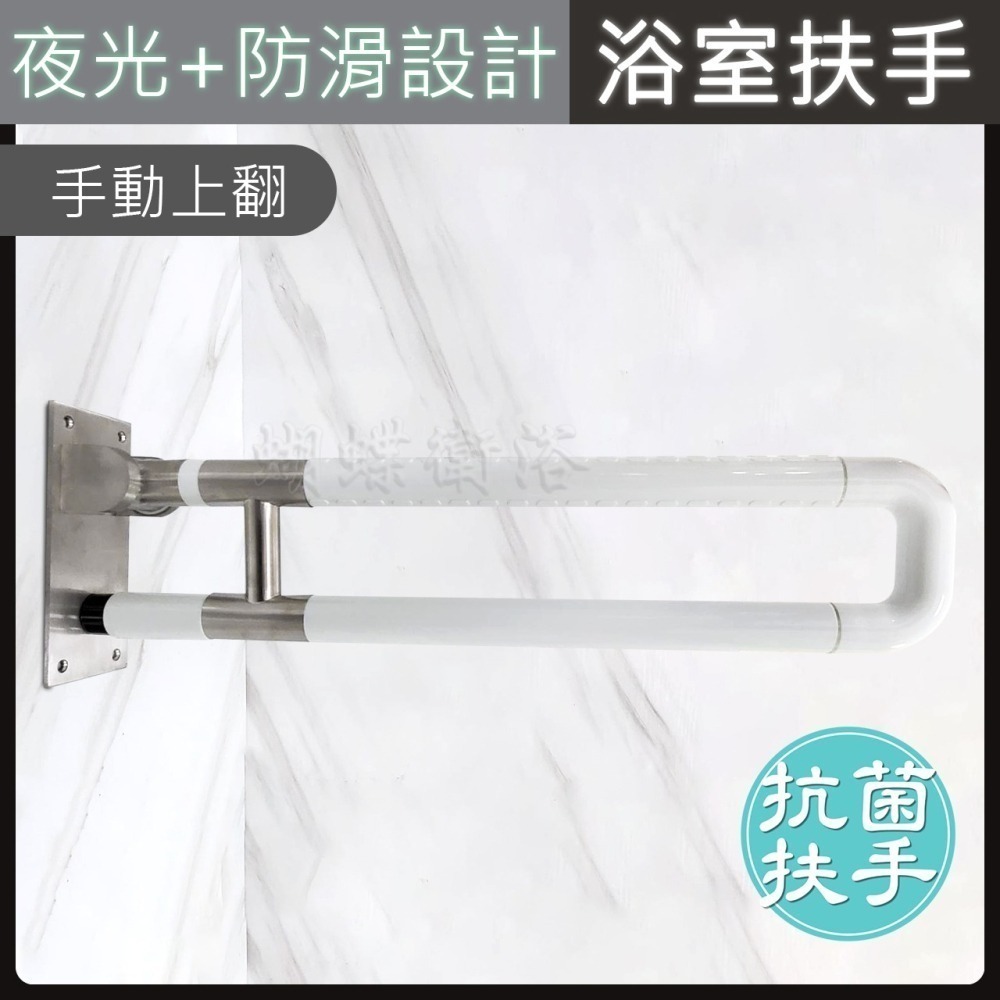 蝴蝶衛浴~抗菌安全扶手【夜光+防滑設計】手動上翻浴室扶手.無障礙.不鏽鋼.浴室.廁所.上掀扶手.通過SGS抗菌測試