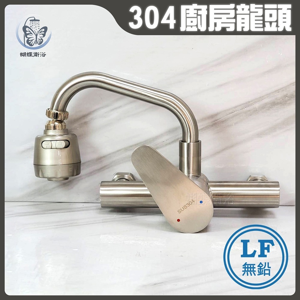 蝴蝶衛浴~【LF無鉛認證 40芯】304不鏽鋼廚房無鉛水龍頭.冷熱混合.壁式龍頭.出水管可移動.兩段出水