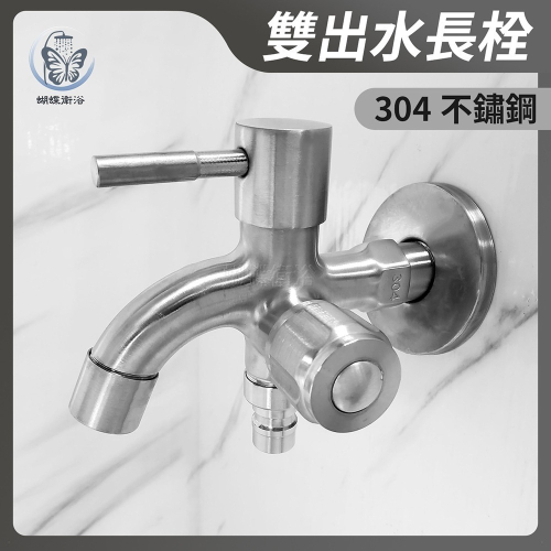 蝴蝶衛浴~304不鏽鋼【雙出水長栓】雙水管長栓.雙洗衣機長栓.精密陶瓷閥芯.可裝水管.洗衣機.獨立開關