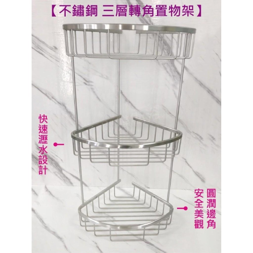蝴蝶衛浴~【物美價廉 304不鏽鋼 置物架】三層轉角架.白鐵置物架.不鏽鋼置物架.多層置物架.不銹鋼收納架.浴室置物架