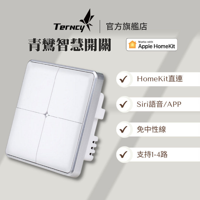青鸞智慧開關,通過Apple HomeKit認證,只需掃描即可輕鬆加入Apple家庭App使用。不需改裝修、亦無需重新佈線,輕鬆替代傳統牆壁開關。搭配蘋果家庭中樞,讓吊燈、日光燈、換氣扇等普通家電都能遠端操控、定時、語音控制。