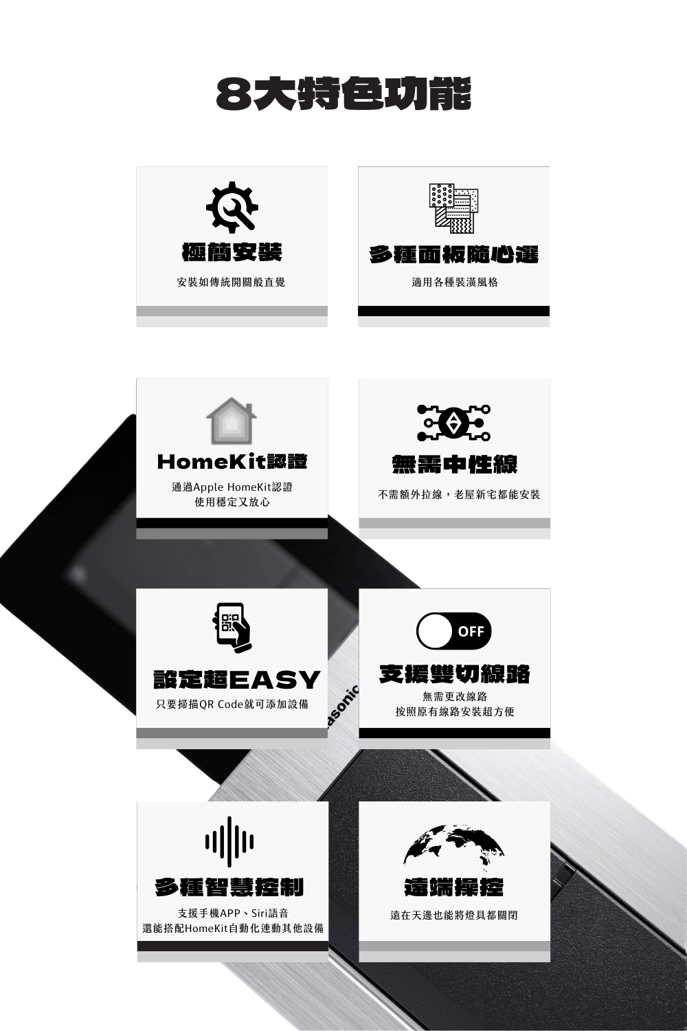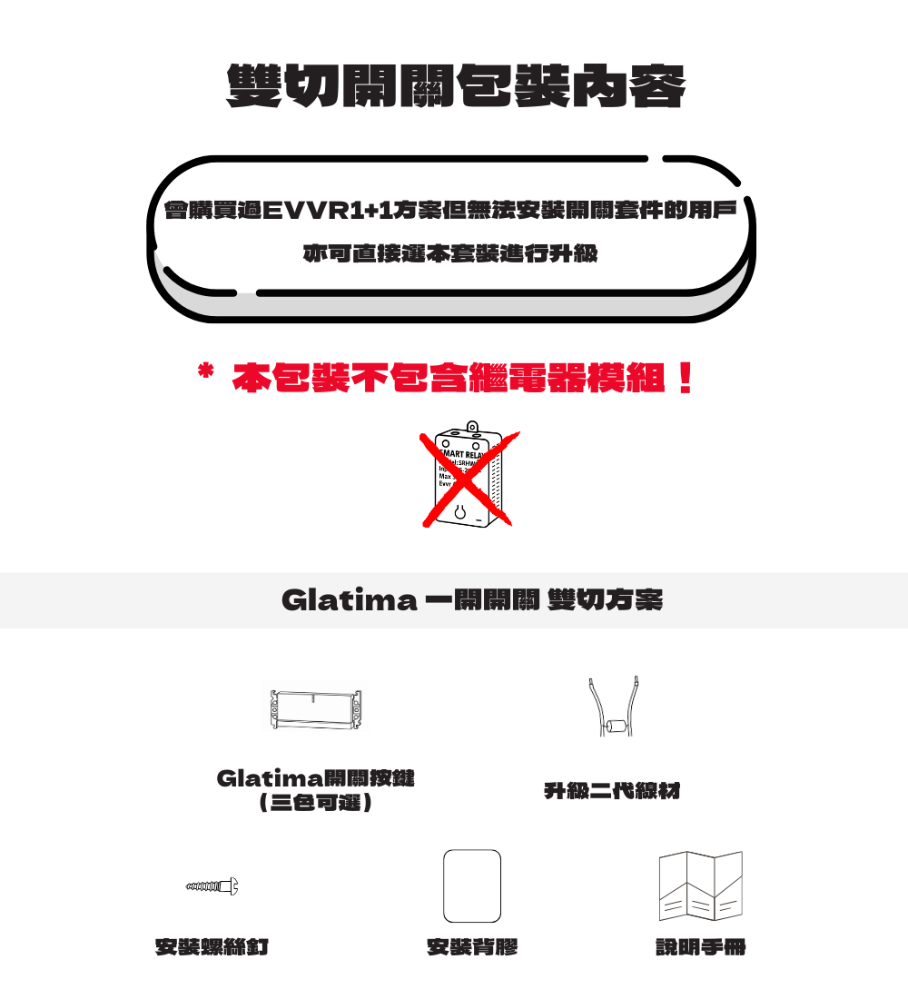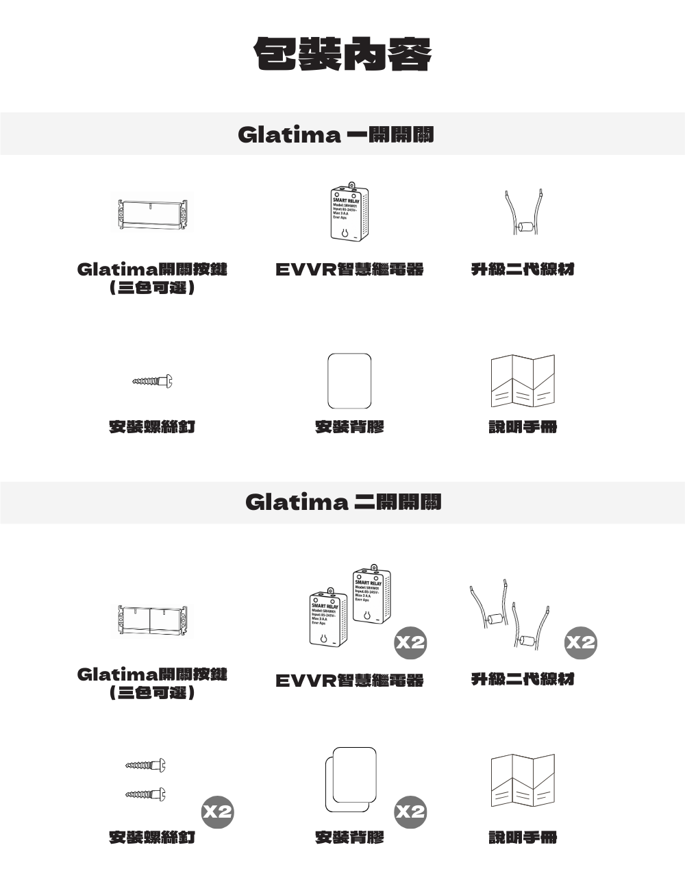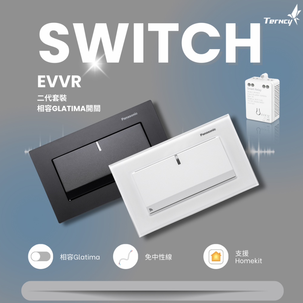 EVVR 二代智慧套裝|相容 Glatima 開關面板|免中性線 支援雙切|不擠底盒|設計師推薦 HomeKit