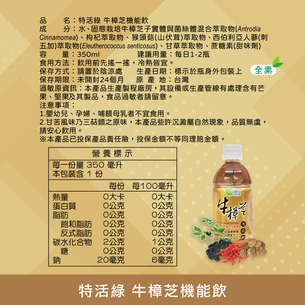 官方直營【特活綠】牛樟芝機能飲350ml (24瓶/箱) 退火飲料 台灣紅寶石 順口好喝 日常保健飲品 刺五加 山伏茸