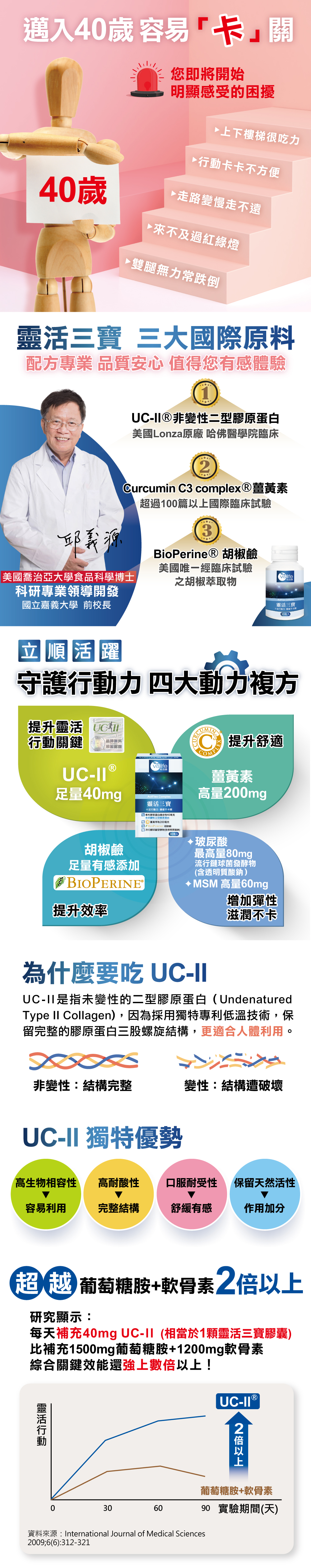 ☑ 美國專利 UC-II®:保留非變性結構,使用文獻研究最佳劑量