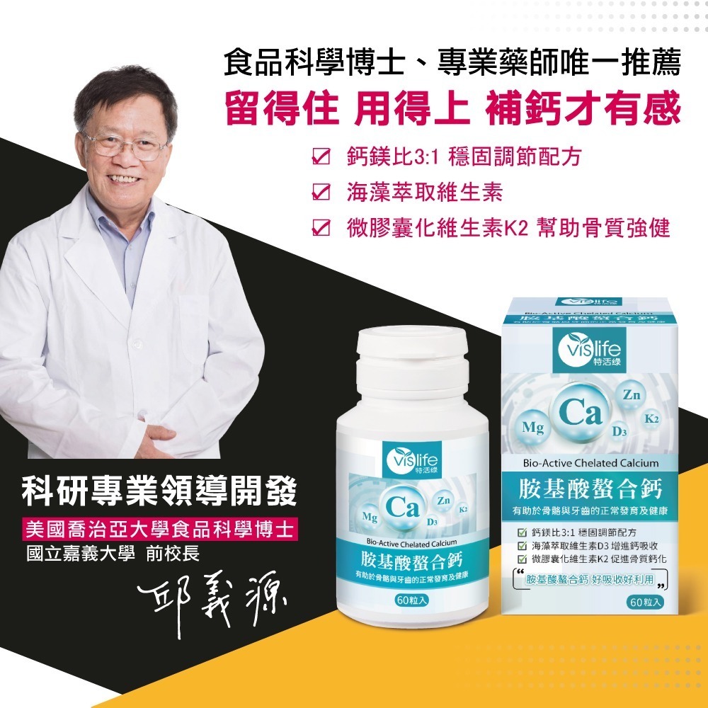 ・胺基酸螯合鈣|特殊結構高吸收率,餐前餐後吃皆合適!