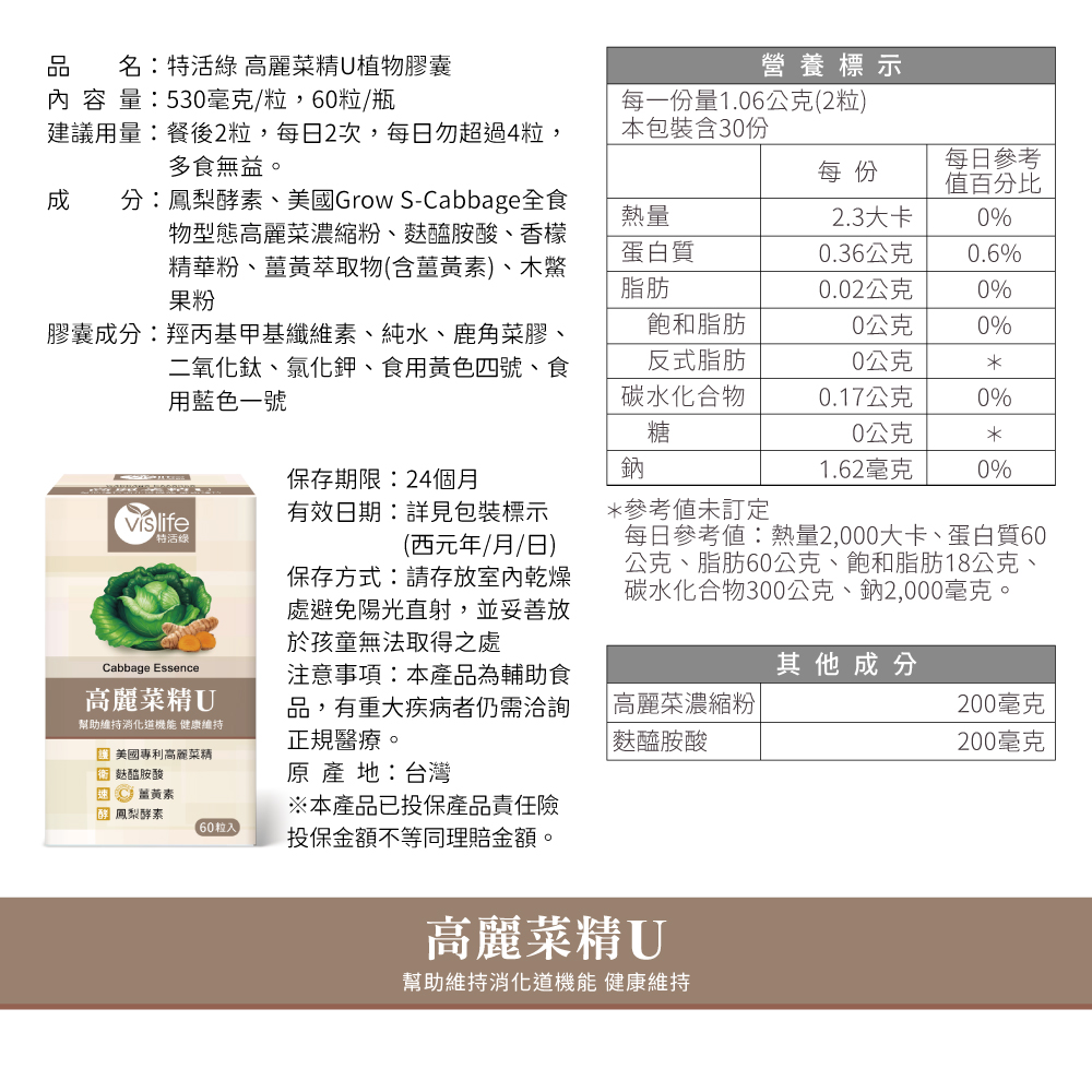 👌博士級消化護衛【特活綠】高麗菜精U(60粒)(原樂酸定U)✦助消化✦史丹佛博士研究✦美國大廠✦專利製程 官方直營