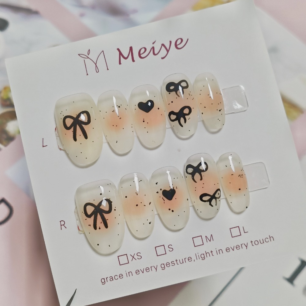 【韓系法式蝴蝶結美甲貼】氣質奶橘暈染×極簡黑絲緞帶