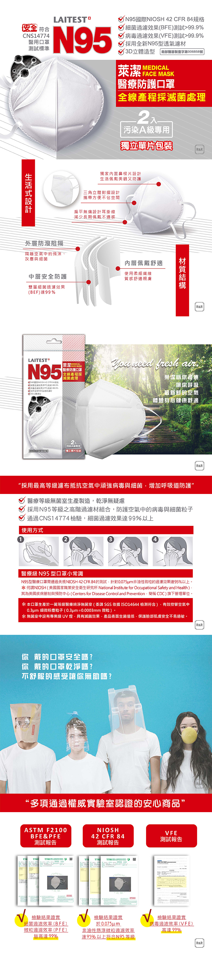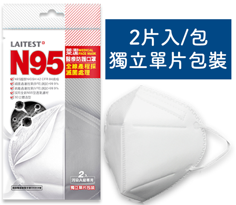 醫療器材許可證所載品名:萊潔 N95醫療防護口罩 (未滅菌)