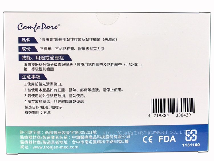 醫療器材許可證所載品名:“康膚寶” 醫療用黏性膠帶及黏性繃帶 (滅菌/未滅菌)