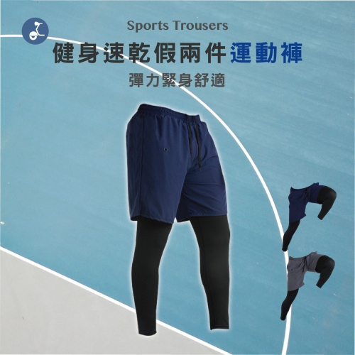 【OTOBAI】多收納假兩件運動褲 假兩件 跑步 短褲 球褲 M65178 彈力緊身褲 sports trousers