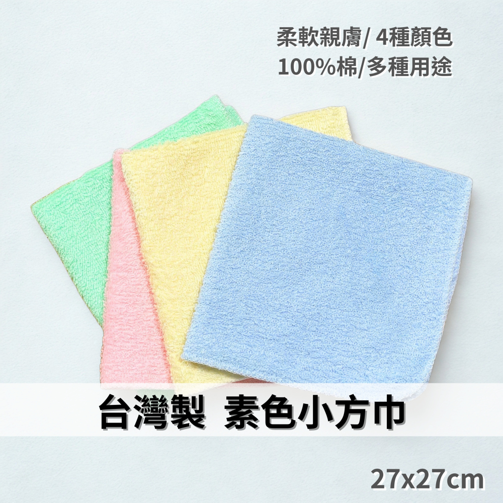 台灣製 素色小方巾 27x27cm | 純棉輕薄柔軟吸水口水巾 純色擦汗小手帕巾 學生抹布方巾