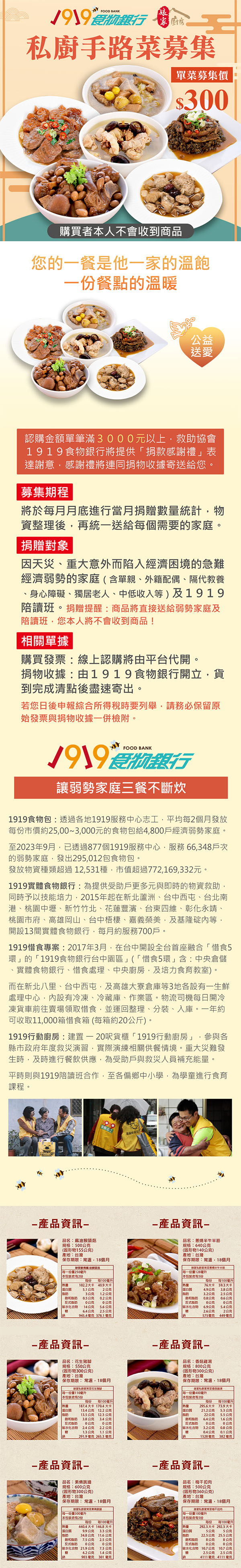 品名:《1919x娘家廚房》圍爐計畫-愛心年菜募集(購買者不會收到商品)