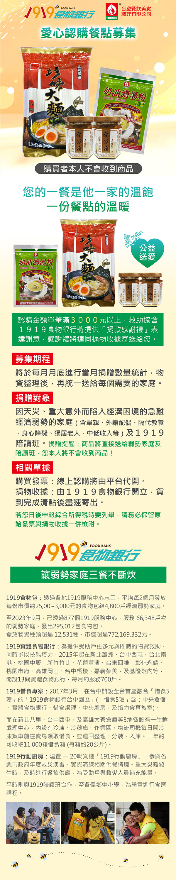 商品名稱:《1919食物銀行*台塑》愛心認購餐點募集(購買者不會收到商品)-N個月