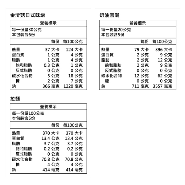 過敏原資訊:金滑菇日式味增:本產品含大豆、芝麻及其製品,不適合其過敏體質者食用