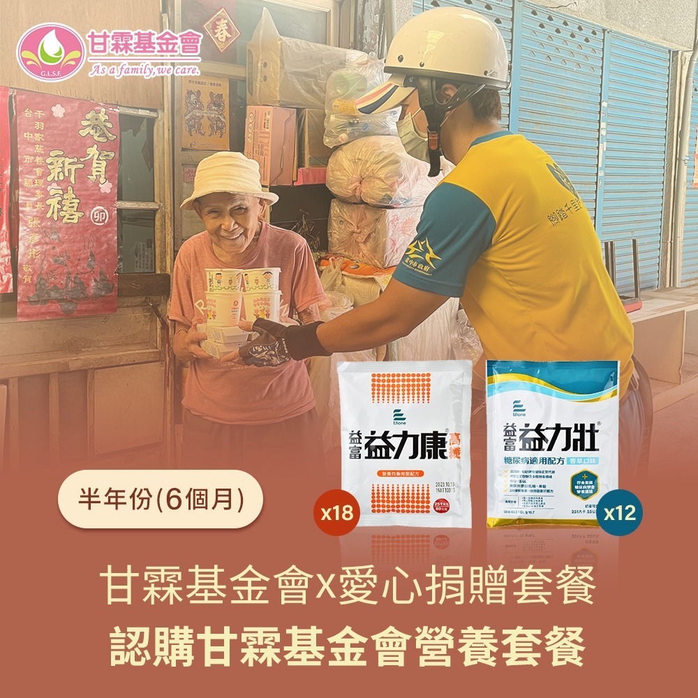 商品名稱:《甘霖基金會x愛心捐贈套餐》認購甘霖基金會營養套餐6個月(6套)