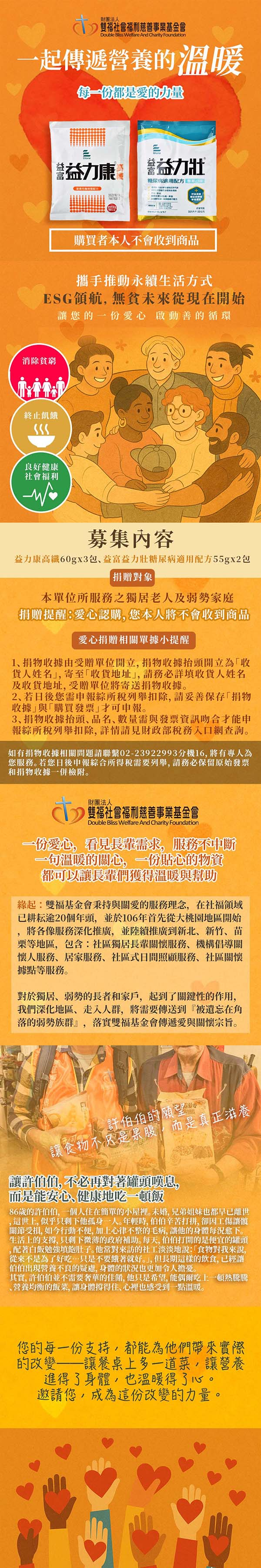 商品名稱:《雙福基金會x愛心捐贈套餐》認購營養套餐1個月(1套)