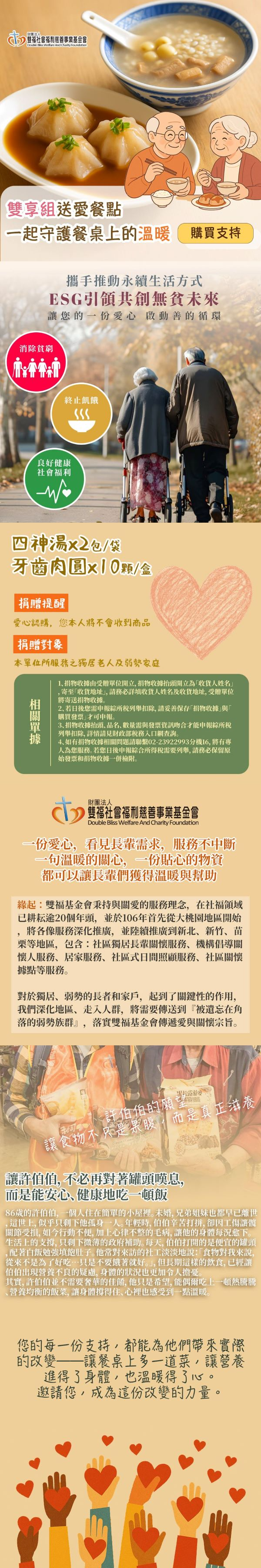 商品名稱:《雙福基金會x愛心募集》雙享組送愛餐點(購買者本人不會收到商品)