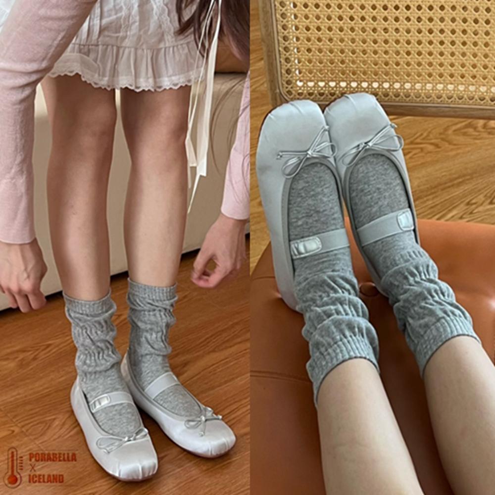 <Porabella現貨>襪套 日系辣妹 堆堆襪 襪套女 女襪子 泡泡襪 中筒襪 小腿襪 秋冬坑條豎條紋保暖襪套