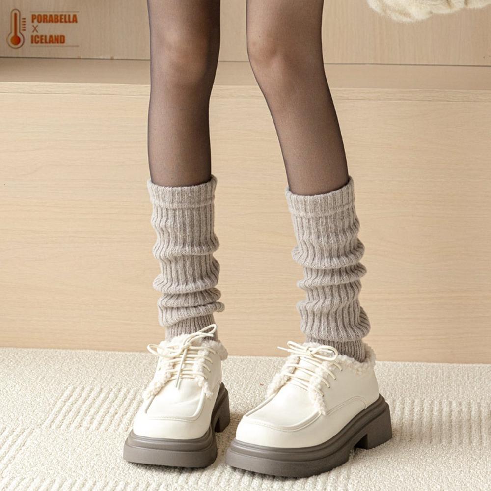 <Porabella現貨>襪套 日系辣妹襪套 露趾堆堆襪泡泡襪 針織襪套女 中筒襪 小腿襪 秋冬針織坑條豎條紋保暖襪套