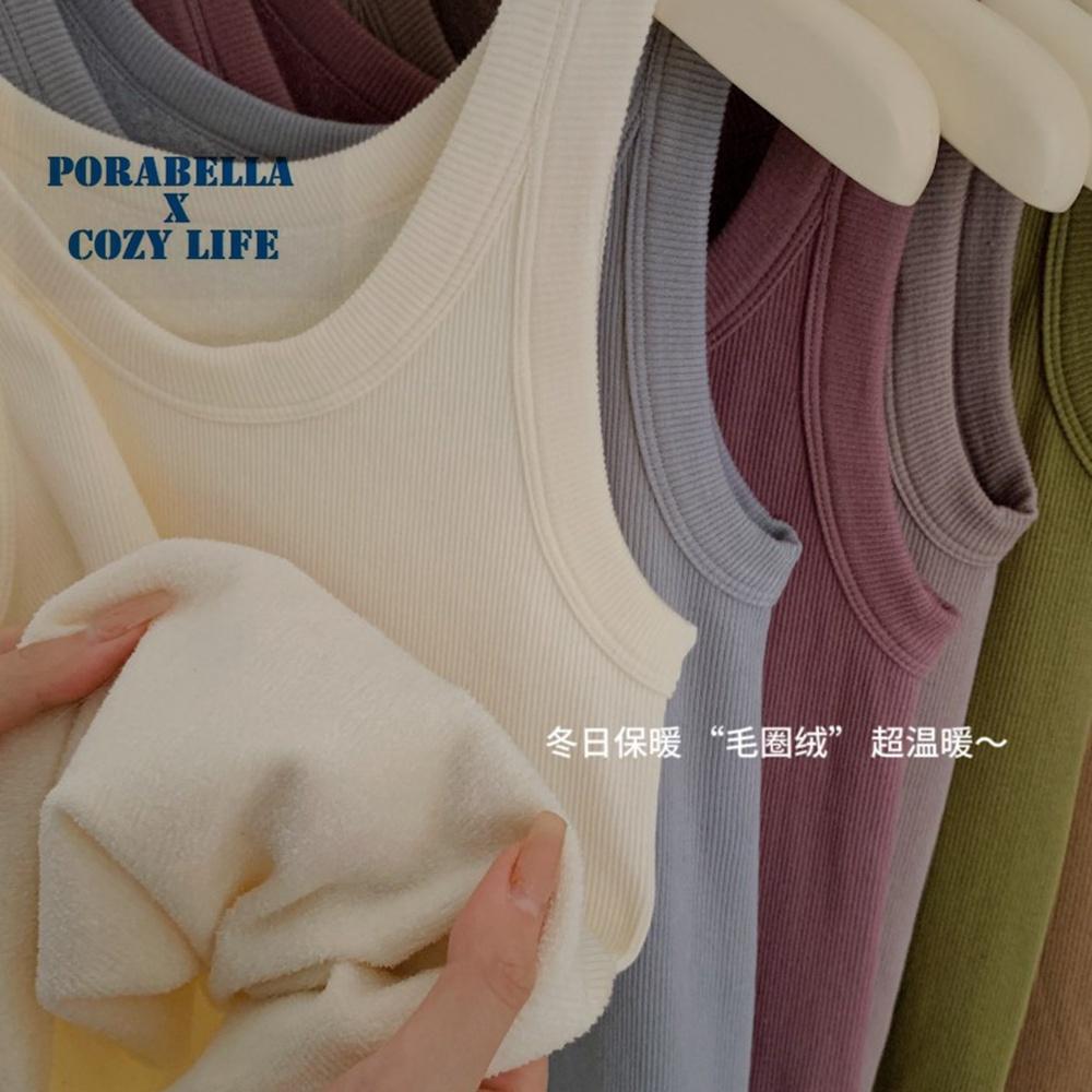 <Porabella現貨>加絨加厚背心 發熱背心 保暖背心 寬肩帶背心 暖暖背心 內搭小可愛 打底衫 bratop