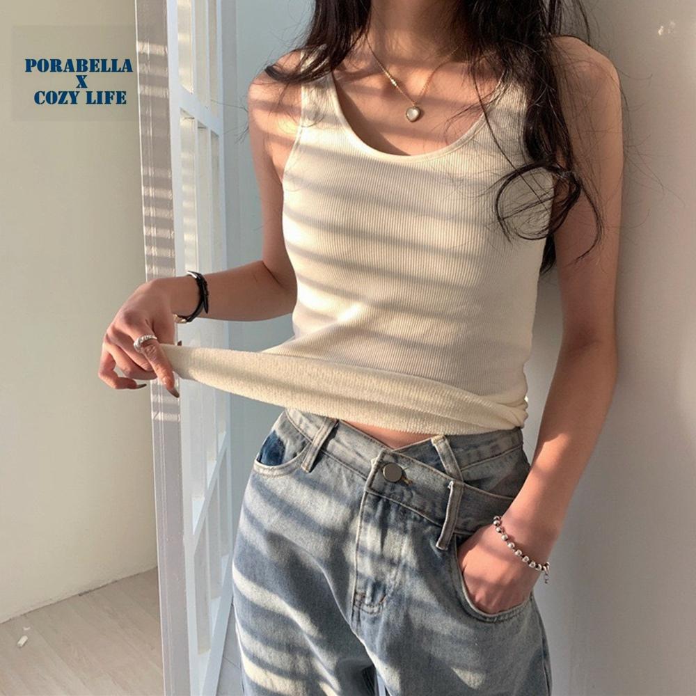 <Porabella現貨>加絨加厚背心 發熱背心 有胸墊免穿內衣 保暖背心 暖暖背心 內搭小可愛 打底衫 bratop