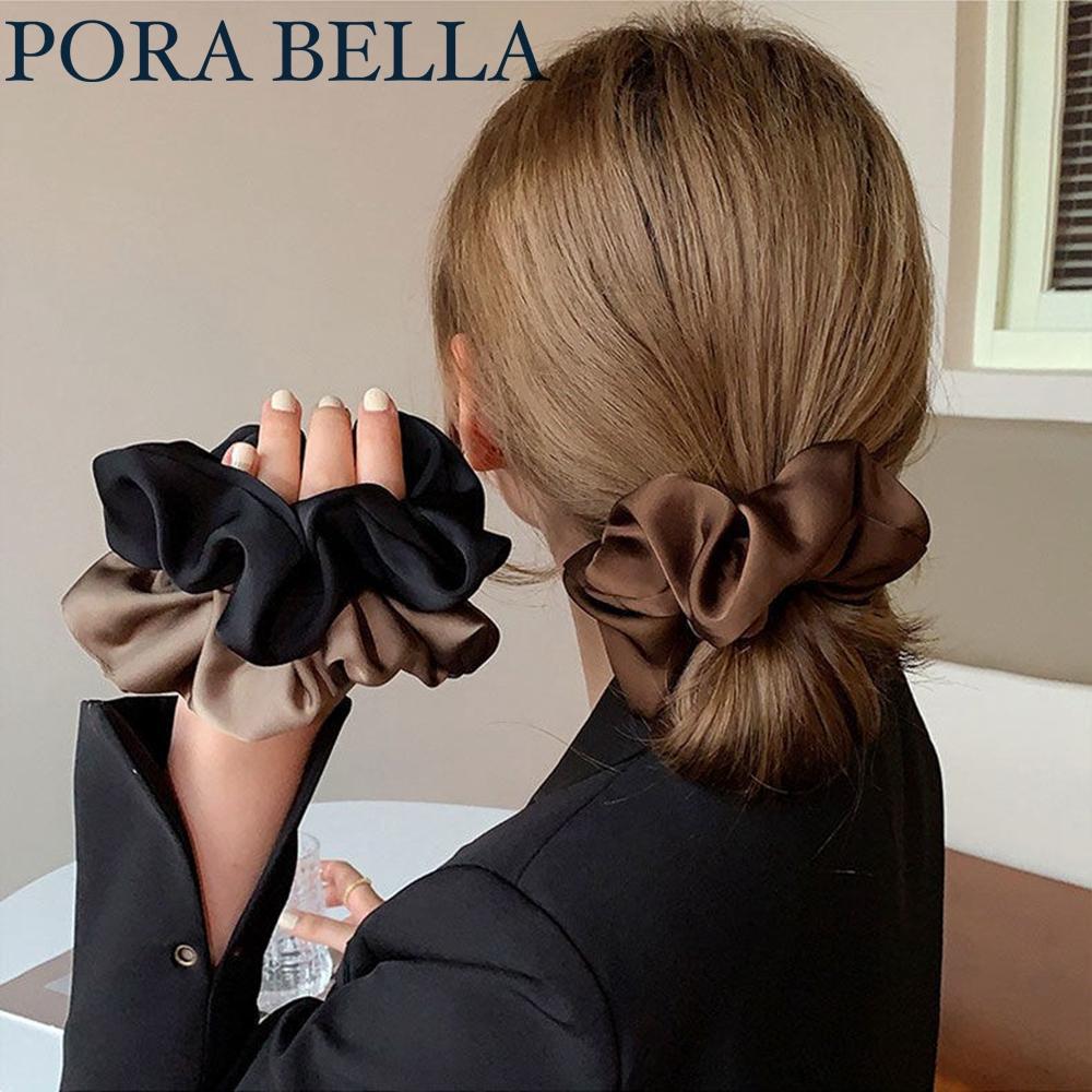 <Porabella現貨>韓版髮圈 法式高級感 奶油質感緞面大腸髮圈 美拉德色 丸子頭皮筋扎頭髮綁頭 髮飾女