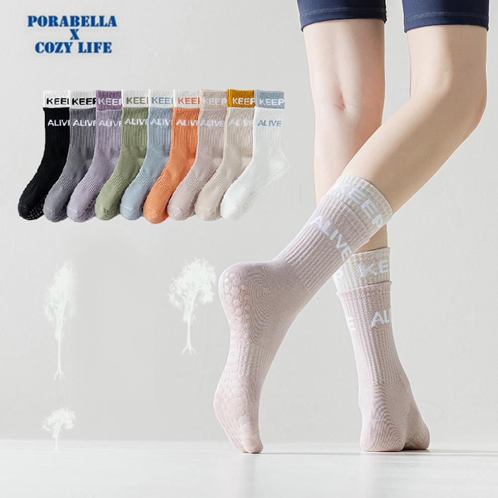 <Porabella現貨>襪子 中筒襪 撞色襪 雙層襪 空中瑜珈襪 運動襪 瑜珈襪 防滑襪 普拉提襪YOGA SOCKS