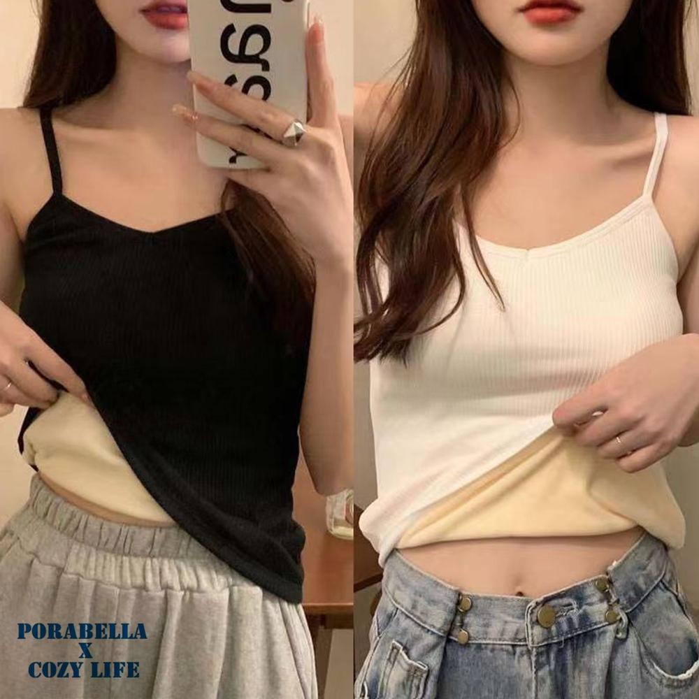<Porabella現貨>加絨加厚背心 發熱背心 保暖背心 細肩背心 暖暖背心 內搭小可愛 打底衫 bratop