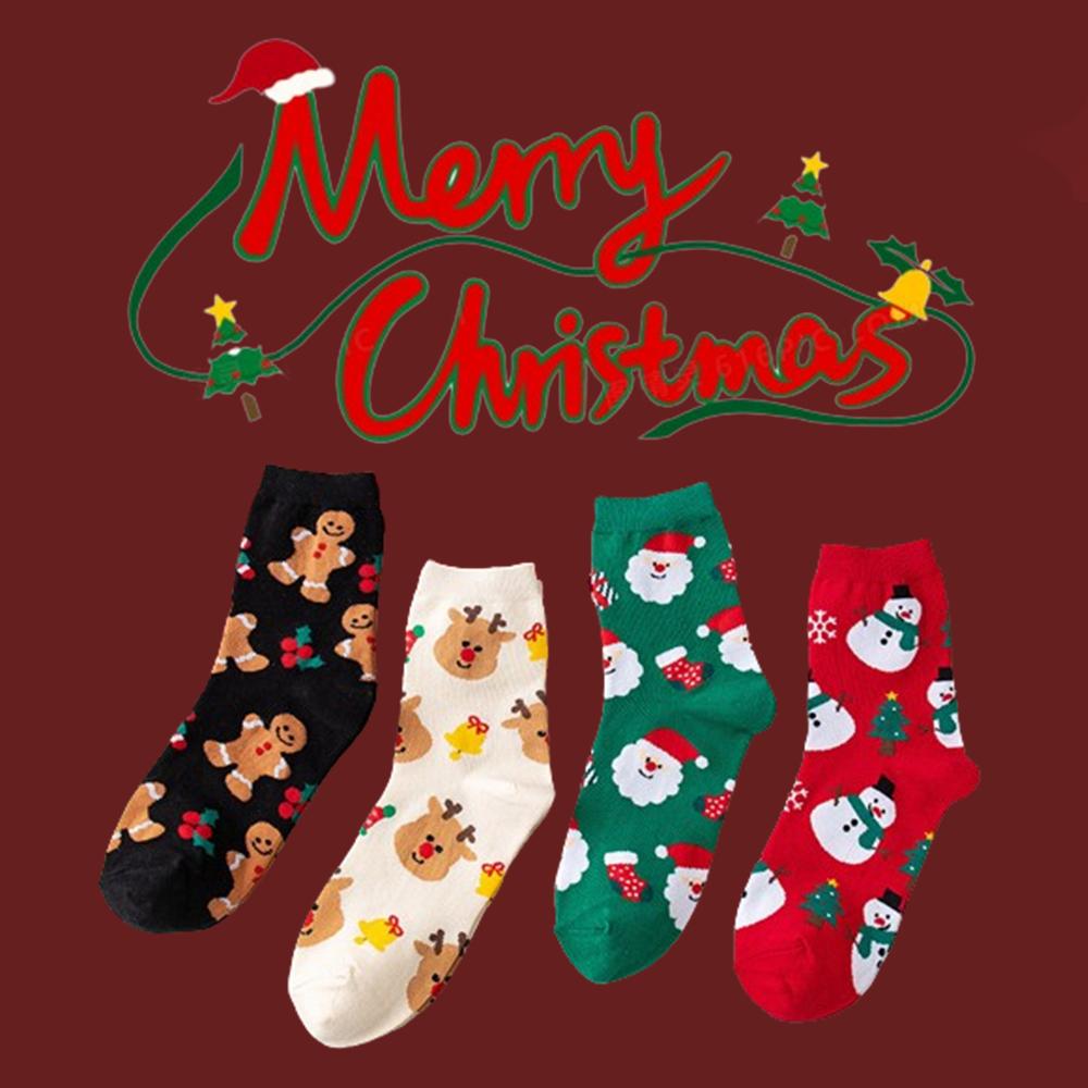 <Porabella現貨>4雙一組【附盒子】聖誕節 聖誕襪 中筒襪 聖誕老公公 麋鹿 雪人 薑餅人 聖誕交換禮物