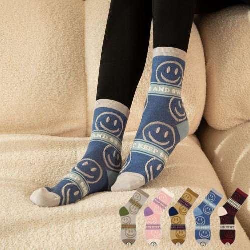 <Porabella>現貨韓國襪 堅持微笑英字浮水笑臉 微笑襪A組 中筒襪 男女襪 條紋襪 塗鴉襪 撞色襪socks