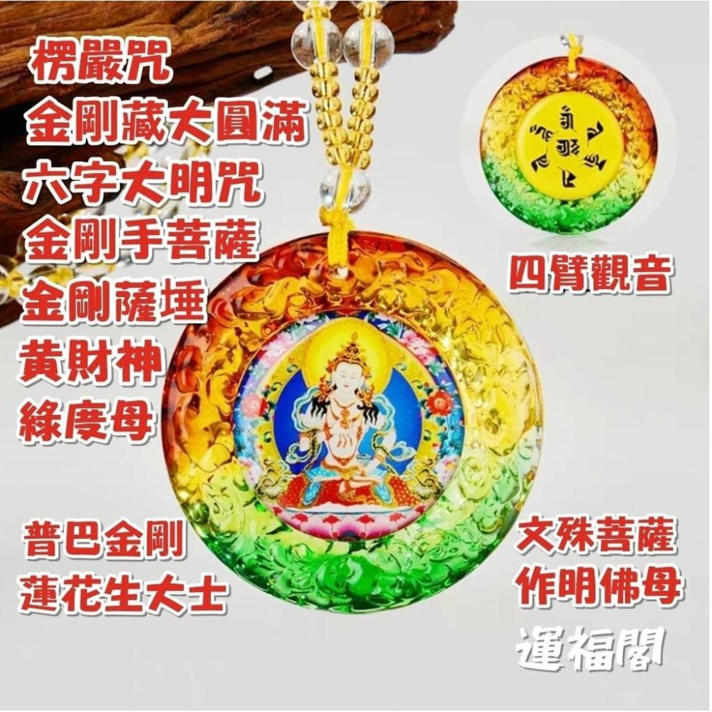 『運福閣』【開光】琉璃佛教咒文項鏈,楞嚴咒,六字真言,黃財神,金剛菩薩,四臂觀音,經文掛牌,佛祖護身符H20