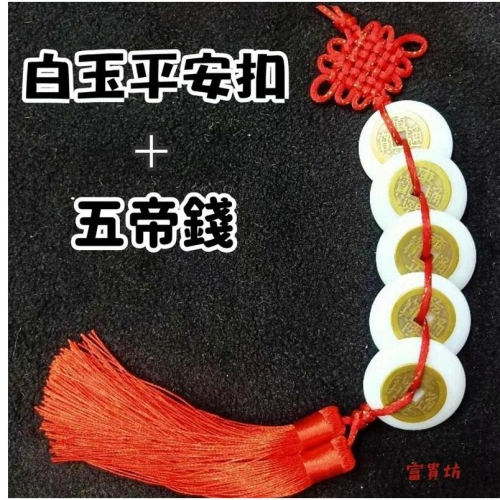 『富貴坊』【開光】五白玉平安扣+五帝錢,白玉平安扣,五帝錢,化解門戶沖煞利器,風水白玉扣,化煞寶物,事業運,財運H03