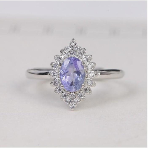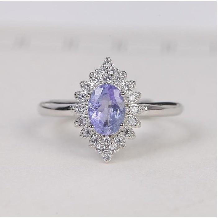 《Muse du Louvre-真寶石,輕奢珠寶》天然坦桑石戒指,925銀戒台(可調式戒圍)H11