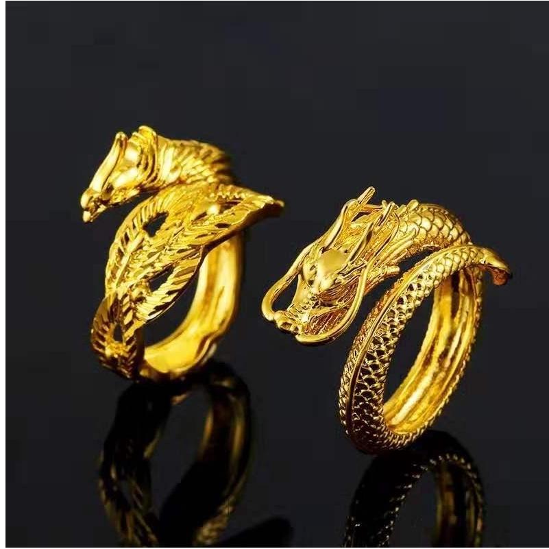 高度仿真24K金男用黃金戒指, 活動式戒圍可調,K金戒指,不掉色(龍)H06