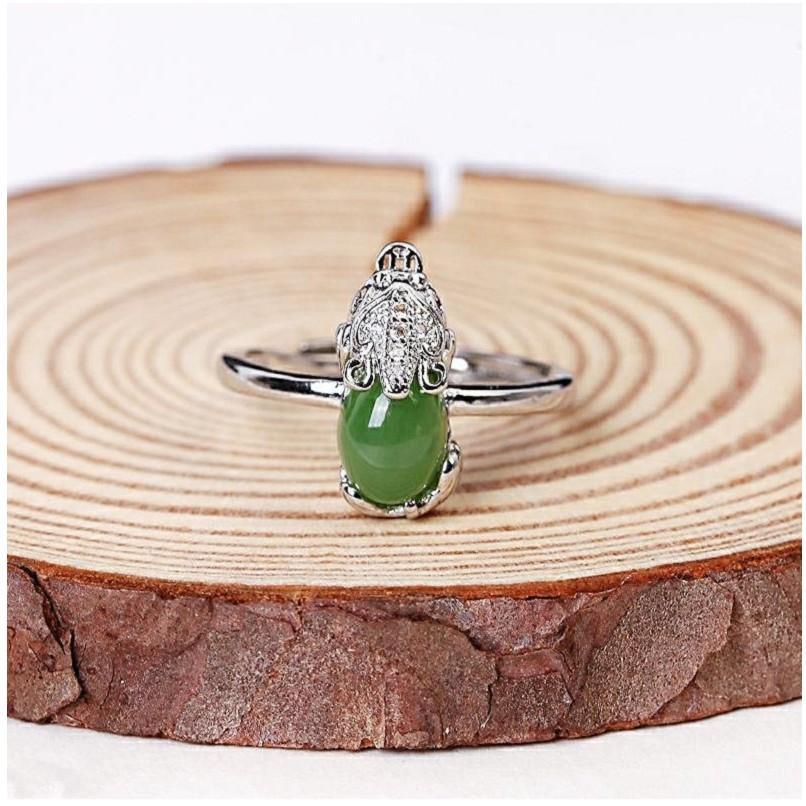 《Muse du Louvre-真寶石》天然和田碧玉貔貅戒指,925銀戒台,附鑑定證書(可調式戒圍)H05