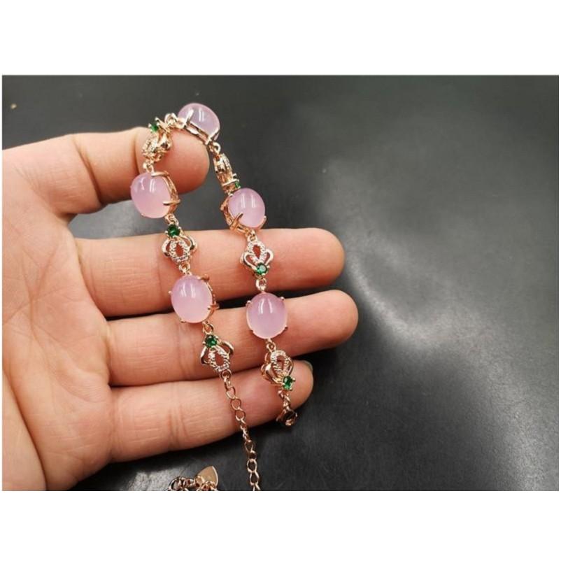 《Muse du Louvre-羅浮宮珠寶》冰種粉紅佳人玫瑰金翡翠手鏈H16