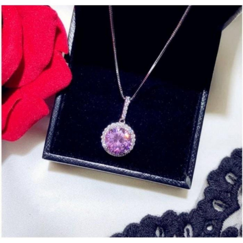 《禦寶苑》2克拉粉紅鑽項鍊+絕美925純銀錬+合金墬台,名媛貴婦必備款,全台最低價 H08