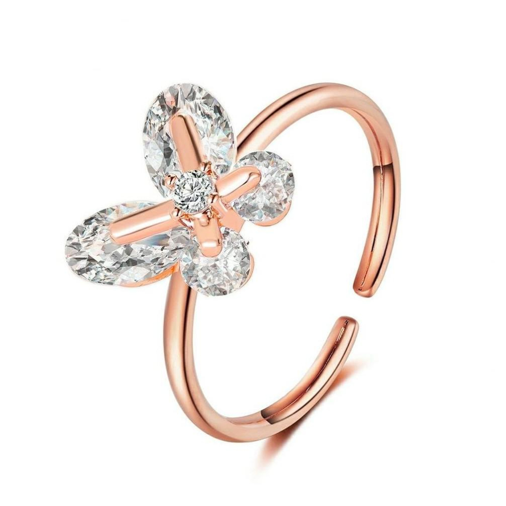 愛情異性緣K金美鑽蝴蝶鎖心時尚佛牌戒指(可調式戒圍), 古巴吉士曼開光,人緣魅力全面提升,愛情事業一帆風順H04