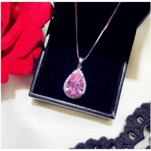 《禦寶苑》3克拉粉紅鑽項鍊+絕美925純銀錬+合金墬台,名媛貴婦必備款,全台最低價 H05