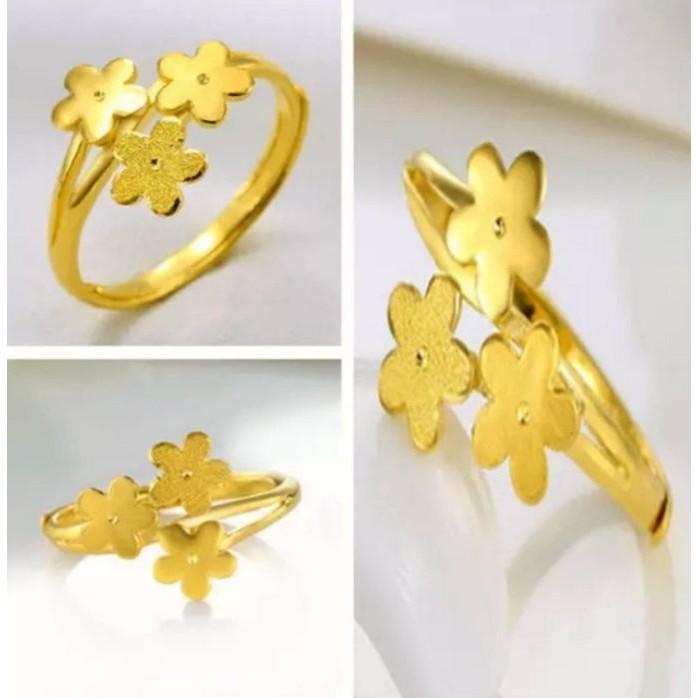 高度仿真24K金女用黃金戒指,活動式戒圍可調,K金不掉色(花朵) H01