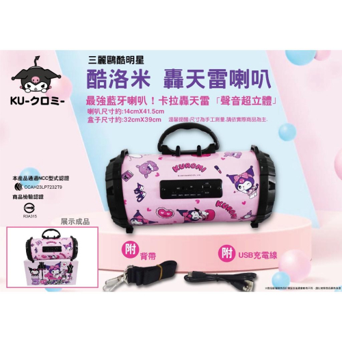 💥台北車站可面交 💥此商品請勿跟其他不是「日本🇯🇵」商品合併結帳,謝謝。 手提喇叭-酷洛米 KUROMI 三麗鷗SANRIO正版授權 【內容】喇拔、USB電源線、背帶、說明書 【電池容量】1200MAH 【喇叭功率】5W 【頻響範圍】87.5-108MHZ 【尺寸】約長29x寬13.5X高15cm 【材質】木頭+電子元件 【產地】中國(台灣監製) *需連接外部電源使用/充電(USB) 酷洛米 KUROMI 超萌造型手提喇叭來啦! 手提式可連接藍芽撥放音樂 付有背帶,可輕鬆帶這走~ 室內、戶外都適用! 一起隨著音樂舞動吧~