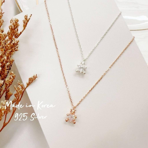 ✨韓國全925純銀 小熊愛心單鑽項鍊✨