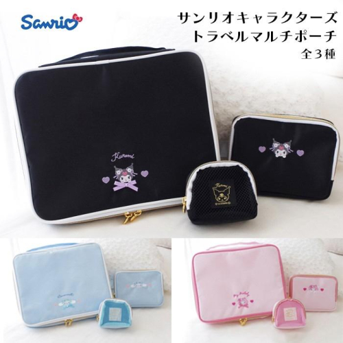 💥此商品請勿跟其他不是「日本🇯🇵」商品合併結帳,謝謝。 緞面旅行收納包3入組-三麗鷗SANRIO正版授權 【款式】大耳狗/美樂蒂/庫洛米 【尺寸】約270x210x60mm約145x105x40mm約80x70x40mm 【內容】3入 【材質】聚酯纖維/鋅合金 【產地】中國(日本監製) 不同尺寸的三件式三麗鷗收納包♪ 非常適合出遊旅行等用途 內部網狀袋方便承裝分類更多小物 所有小袋都配有精緻可愛愛心拉鍊頭 ✨精緻刺繡,提把方便帶著走。 ✨多功能收納,亮眼配色。 ✨拉鍊大開口,容量UPUP⬆️⬆️